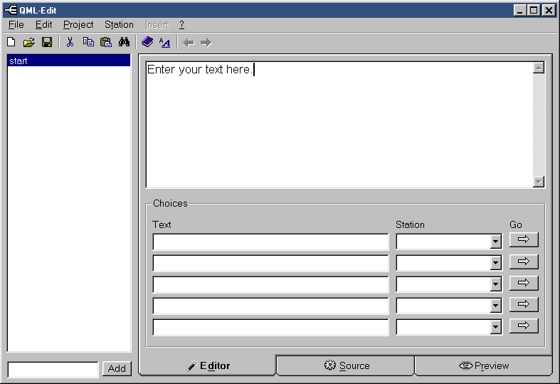 The editor is split into 2 main areas: the stations overview to the left